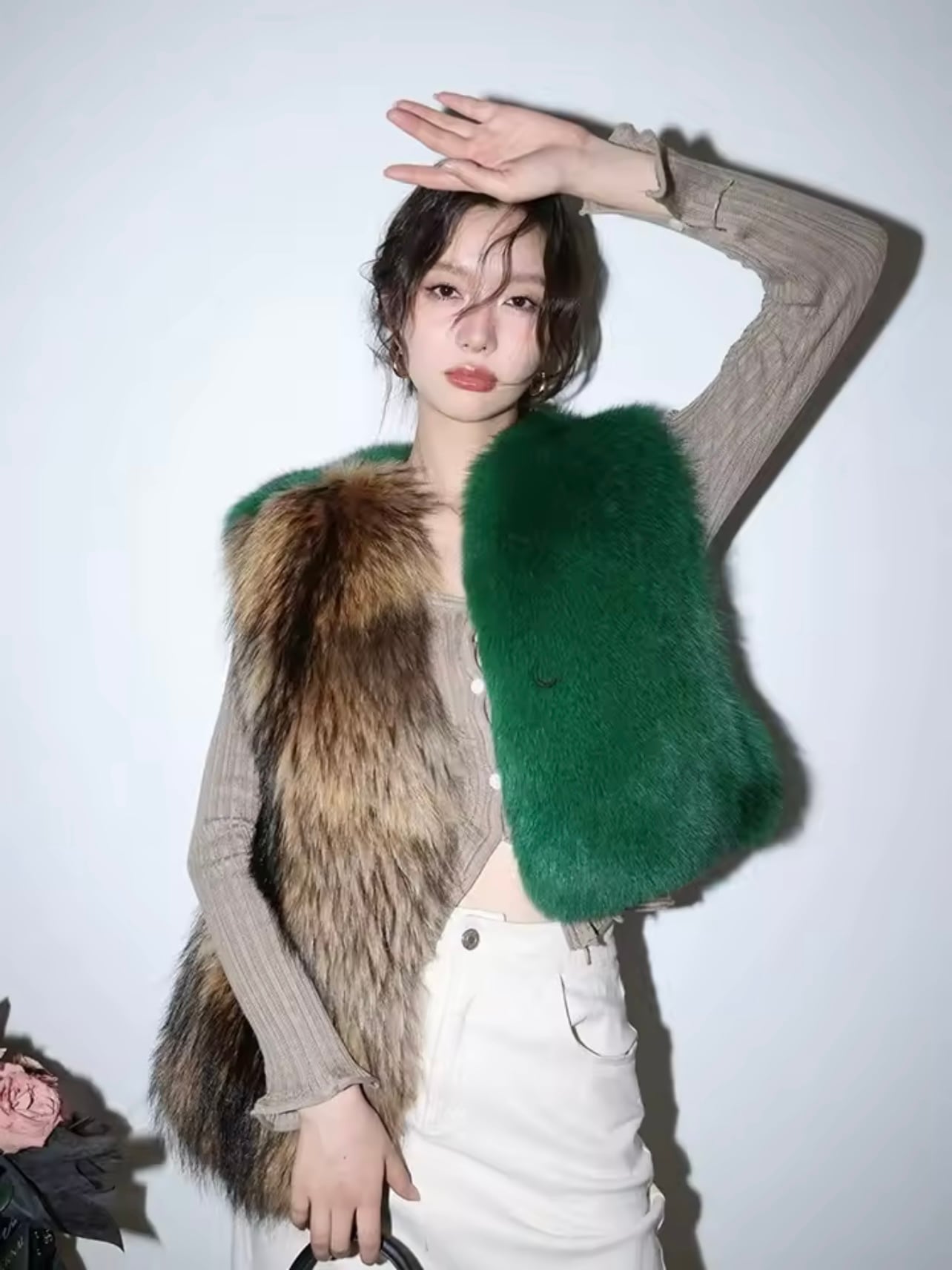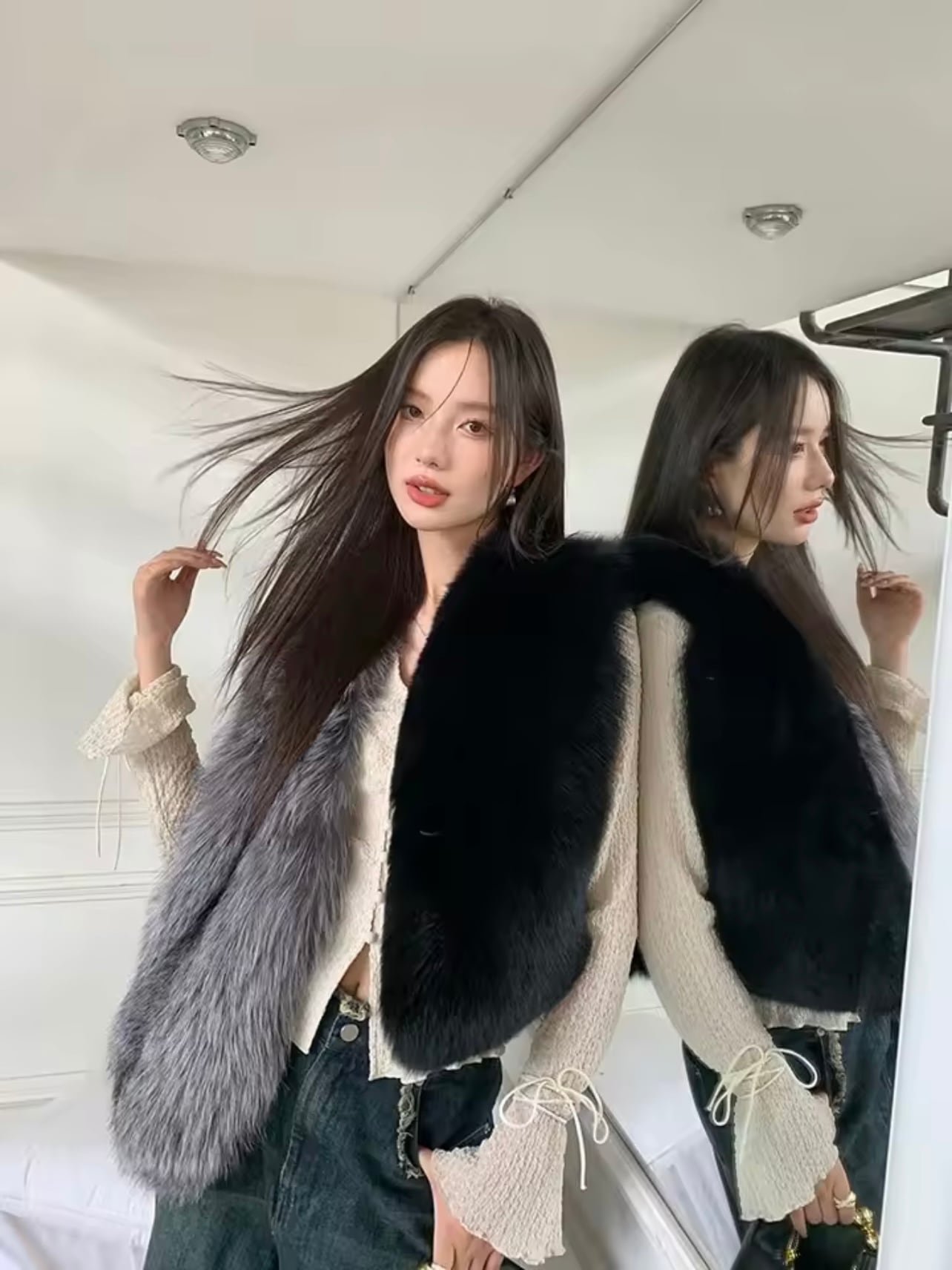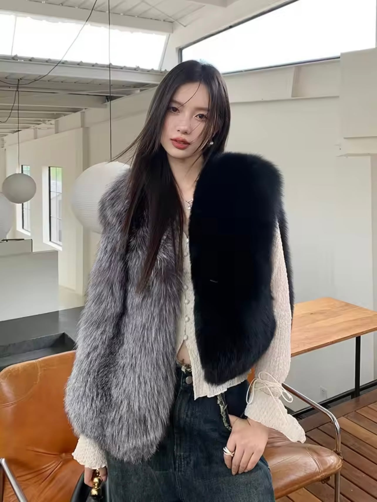 ハイクラスフォックスファーバイカラーベスト