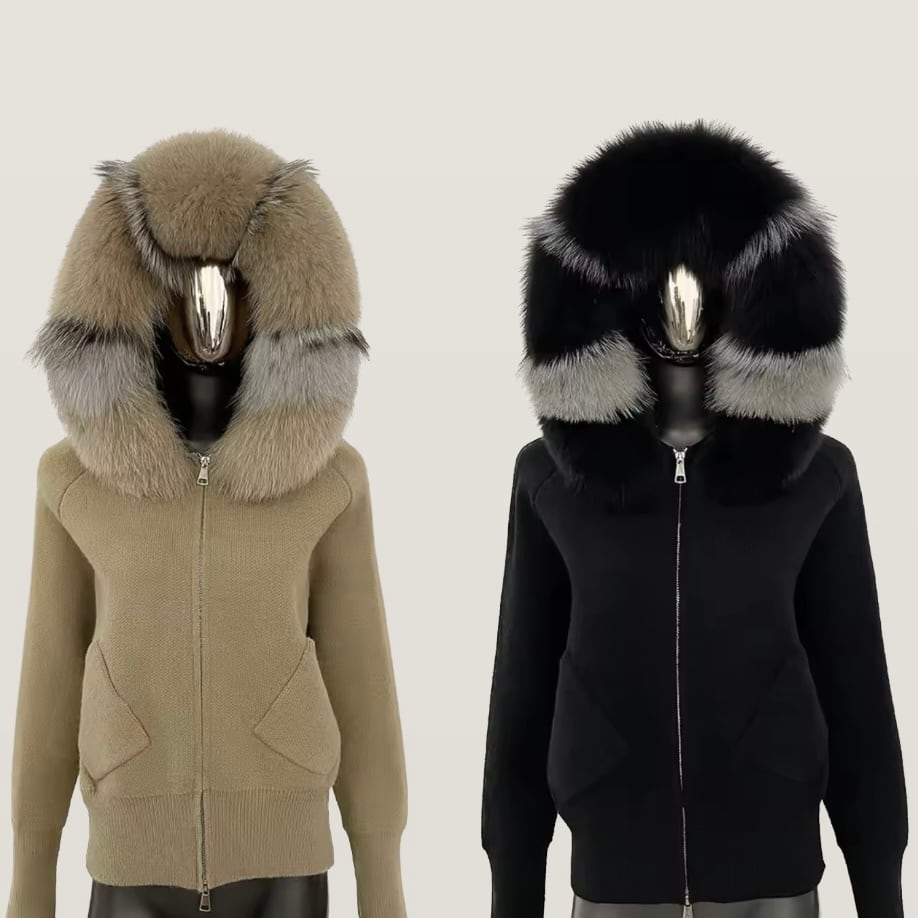 ビッグフォックスファー付きニットパーカー