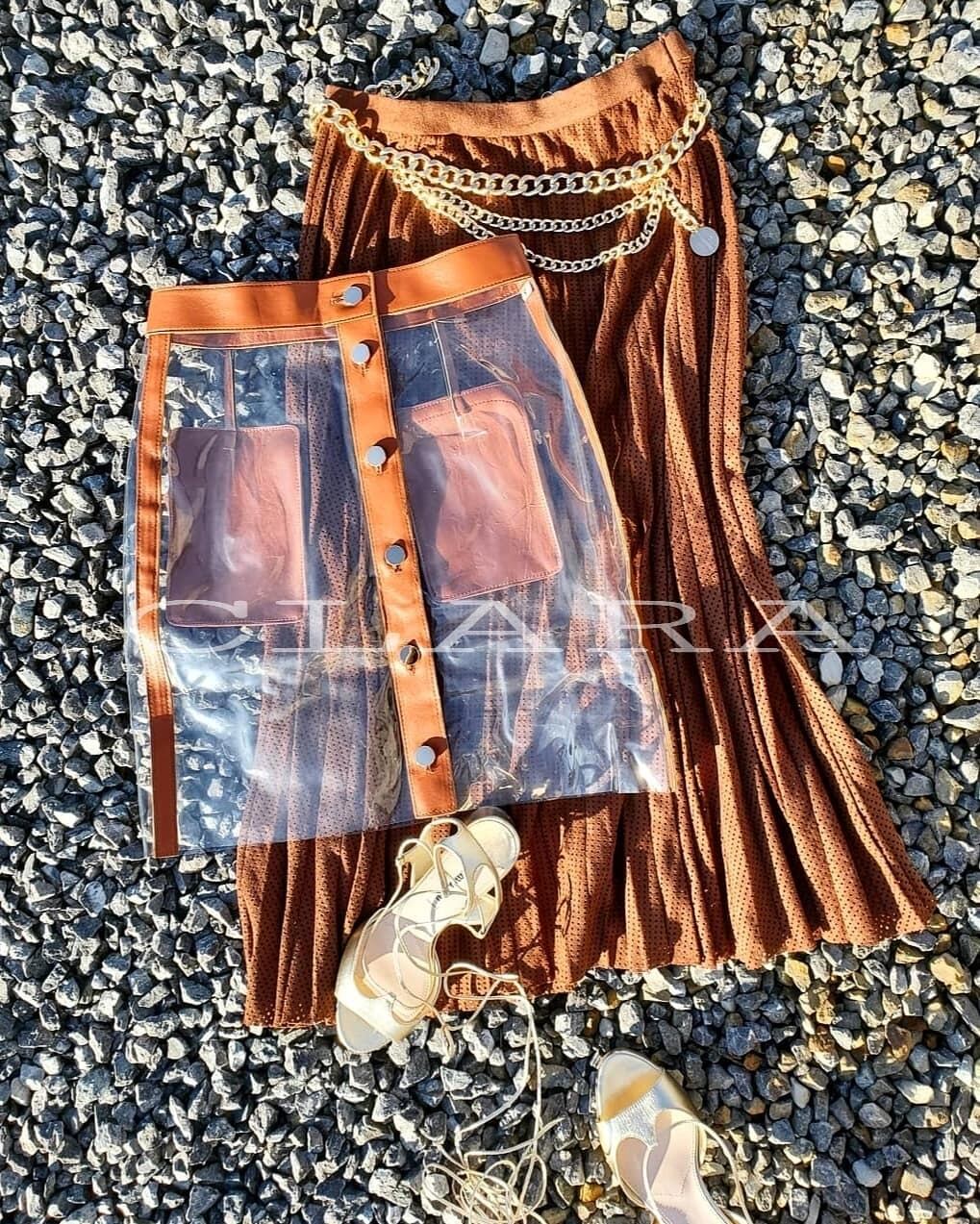 ベロア風Aラインスカート、レザーレインウエストポーチ付スカート2点セット