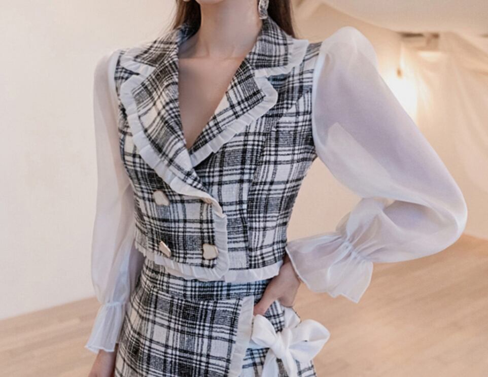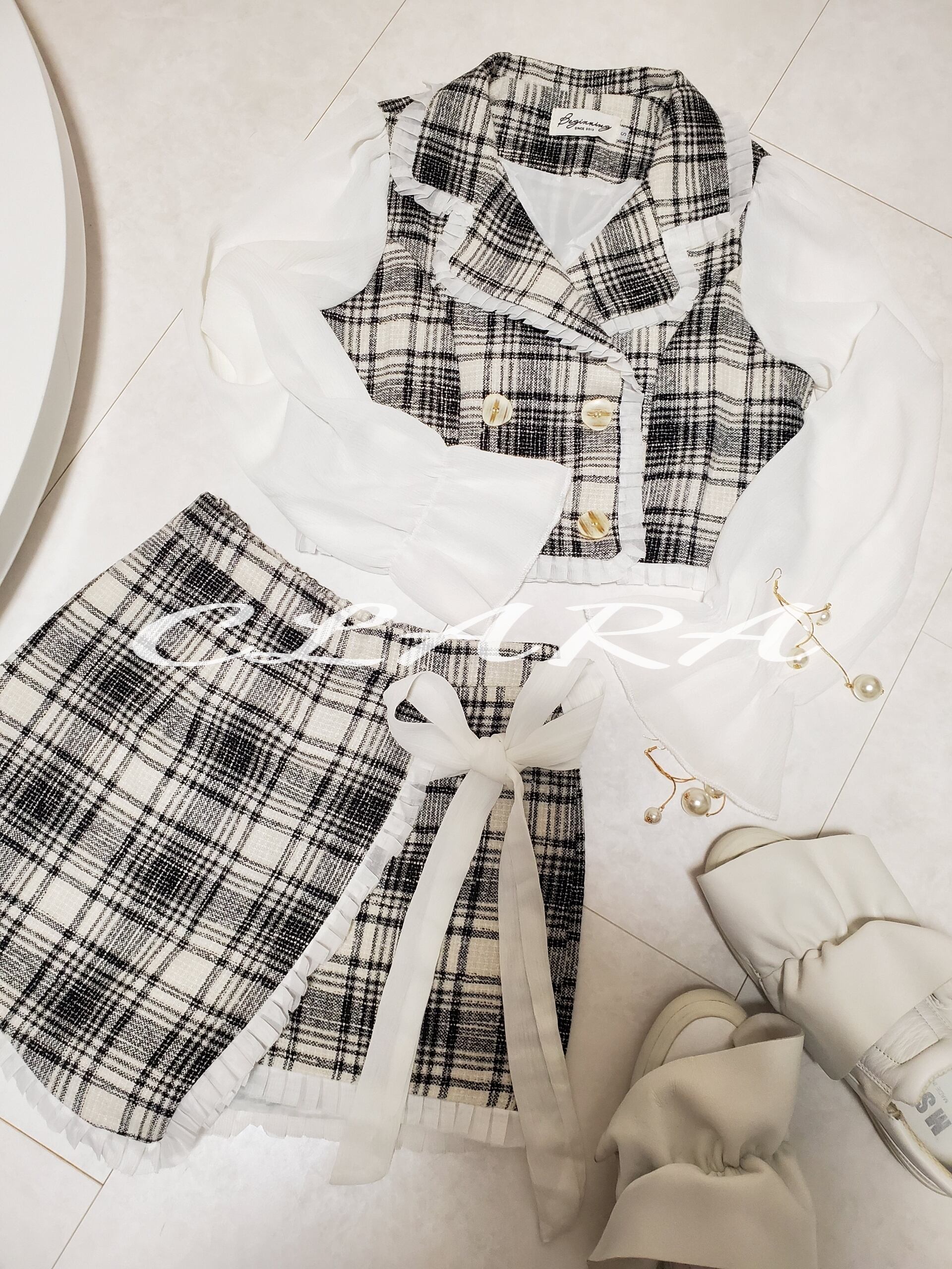 ダブルボタンミニブレスト,ミニ丈パンツスカート