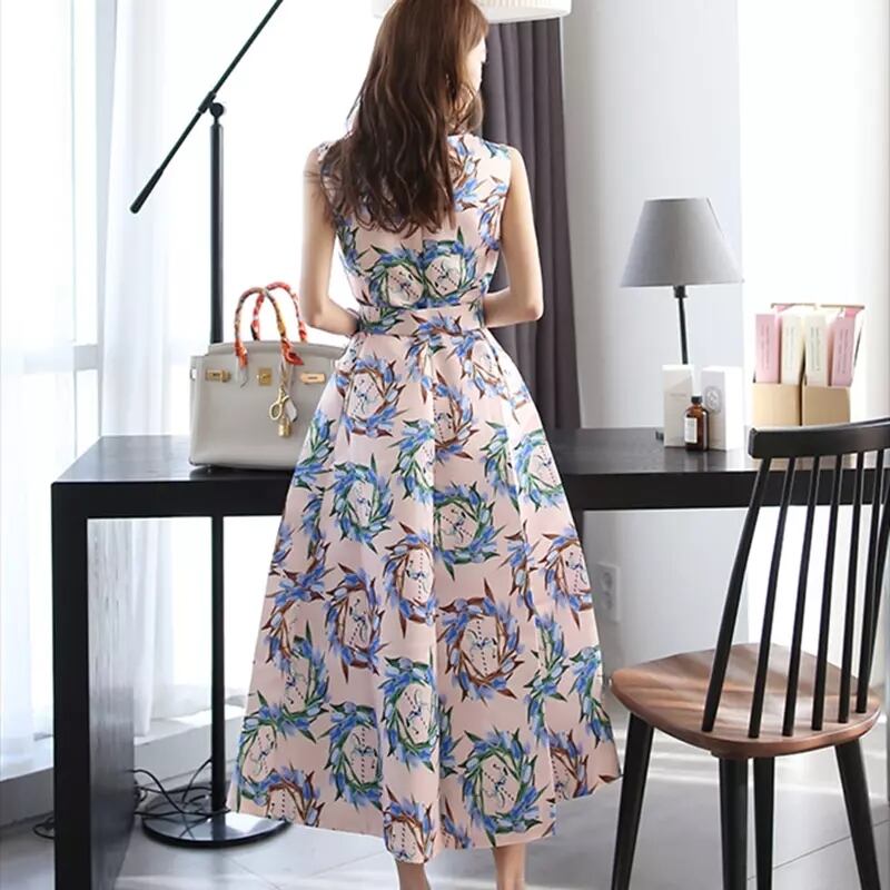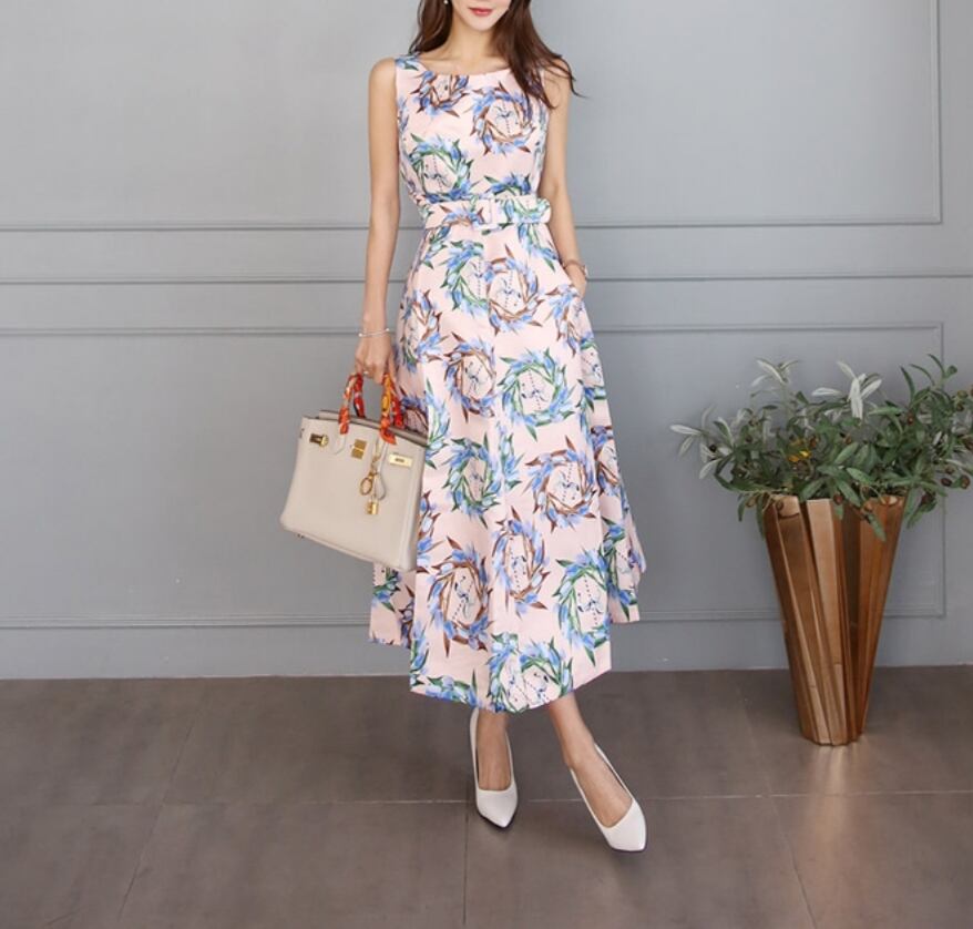 ハイウエストフラワーAラインロングワンピース