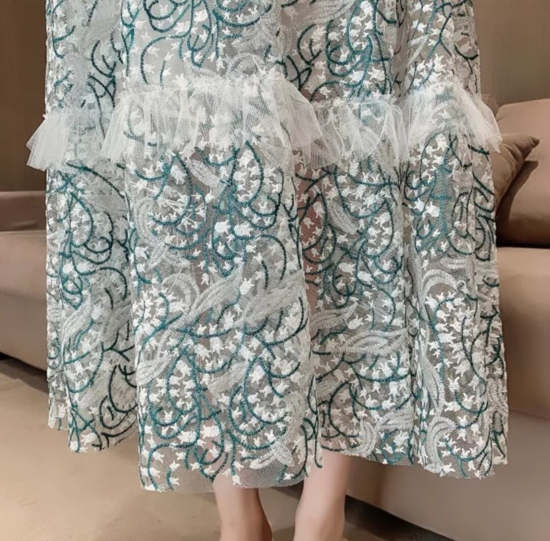 シースルーレースロングワンピース
