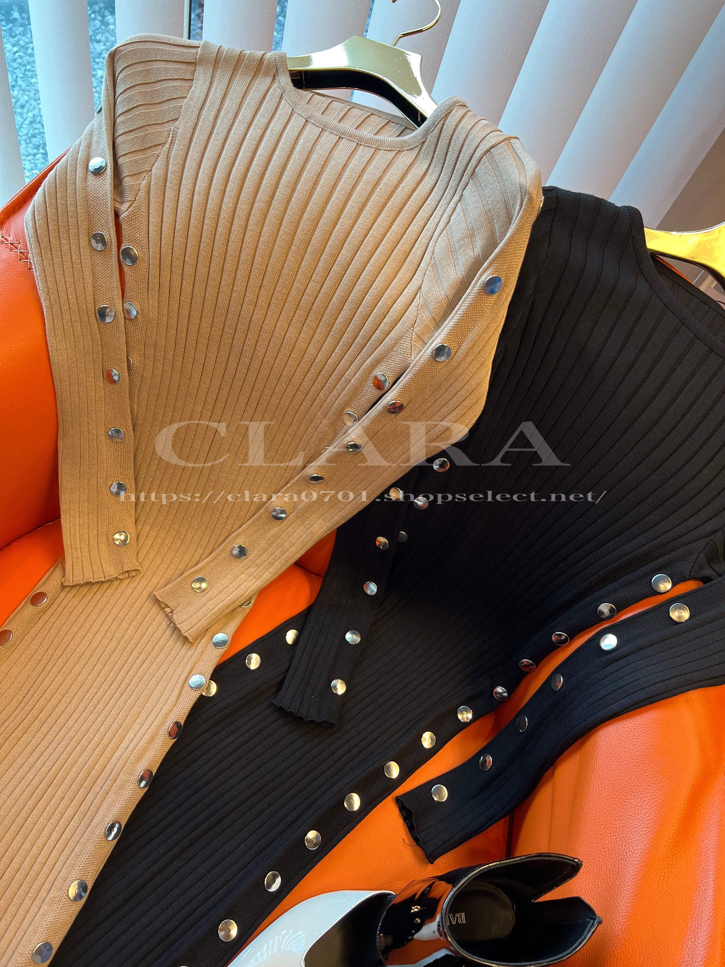 サイドデザインボタンリブニットワンピース