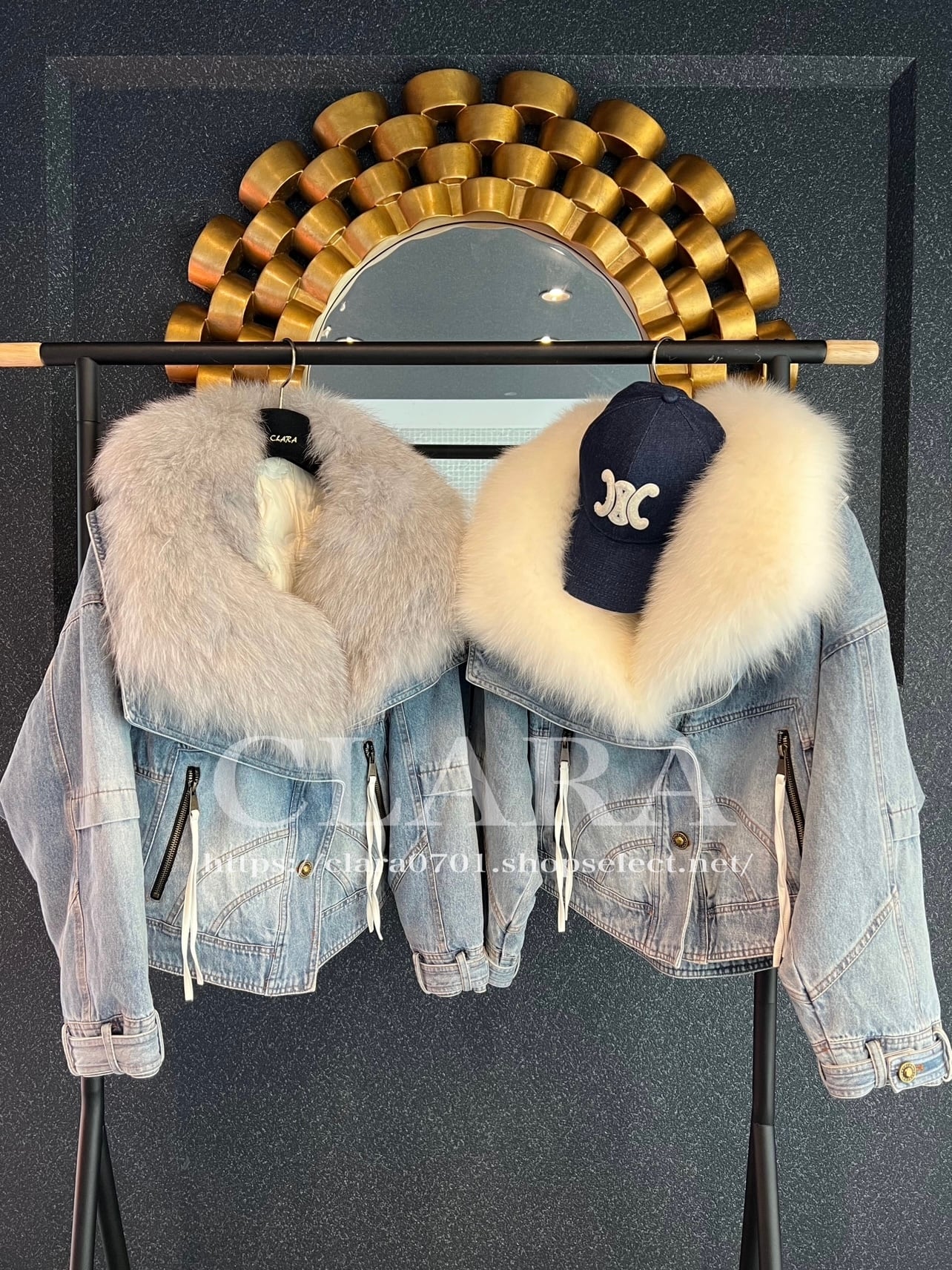 fox Fur Vintage Denim Jacket Down《 再入荷 》