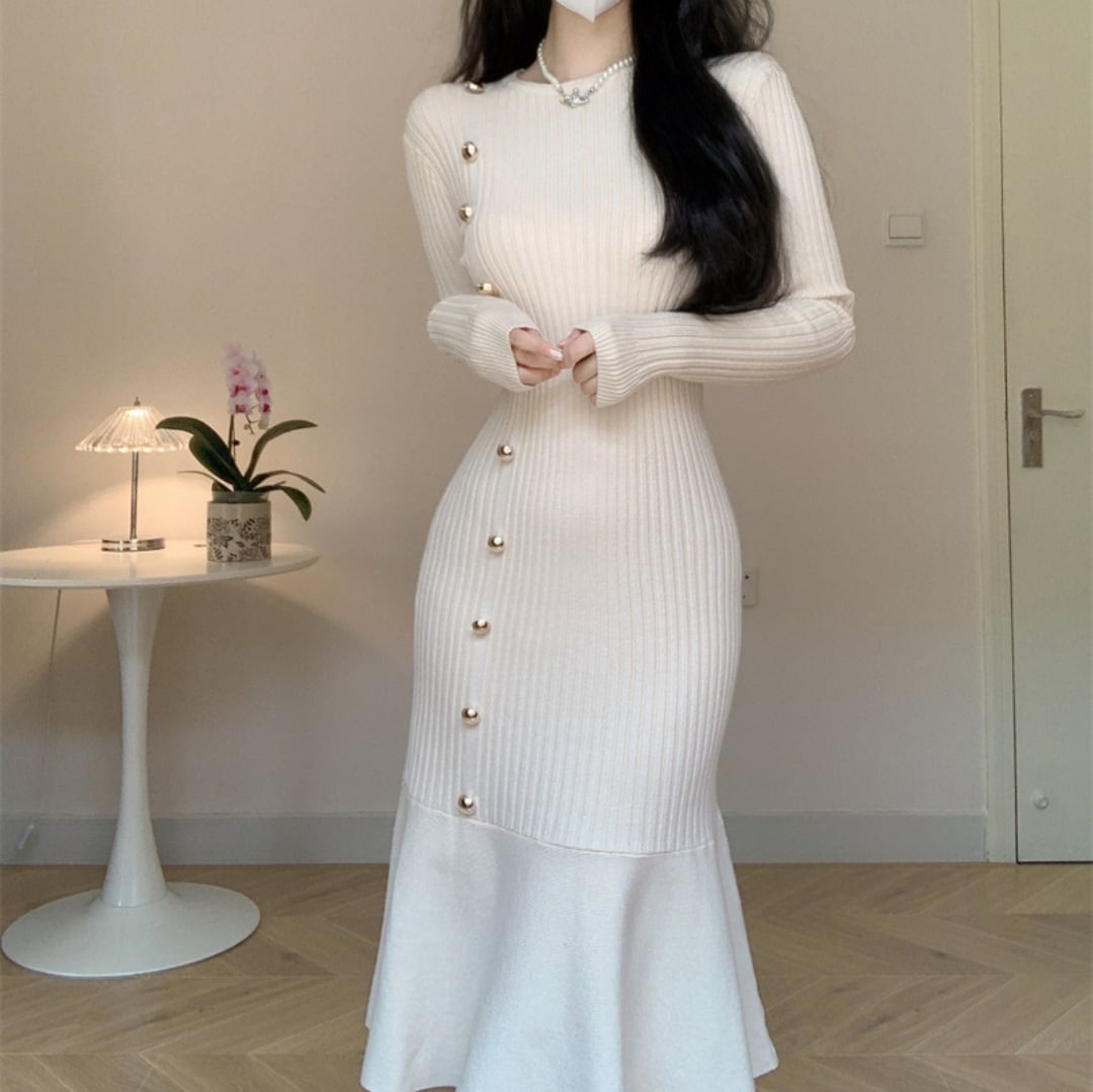 ゴールドボタンマーメイドニットワンピース
