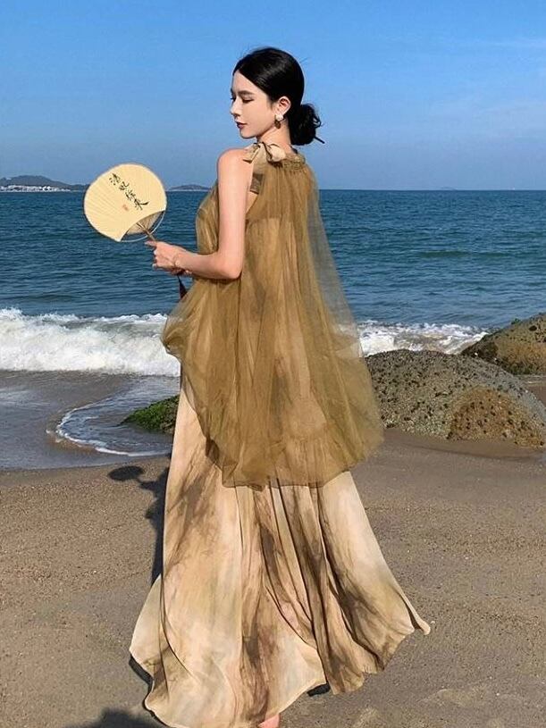 デザインシフォンワンピース